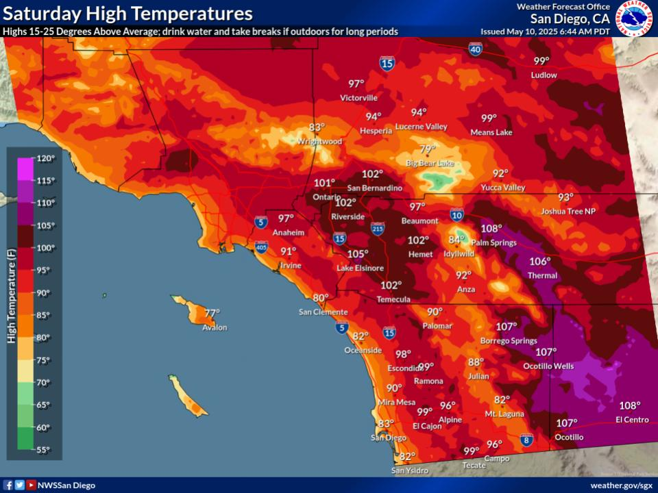 East County Wildfire and Emergency Alerts May 10, 2025 — The National Weather Service has issued a heat advisory in effect now through 9 p.m. for San Diego County’s