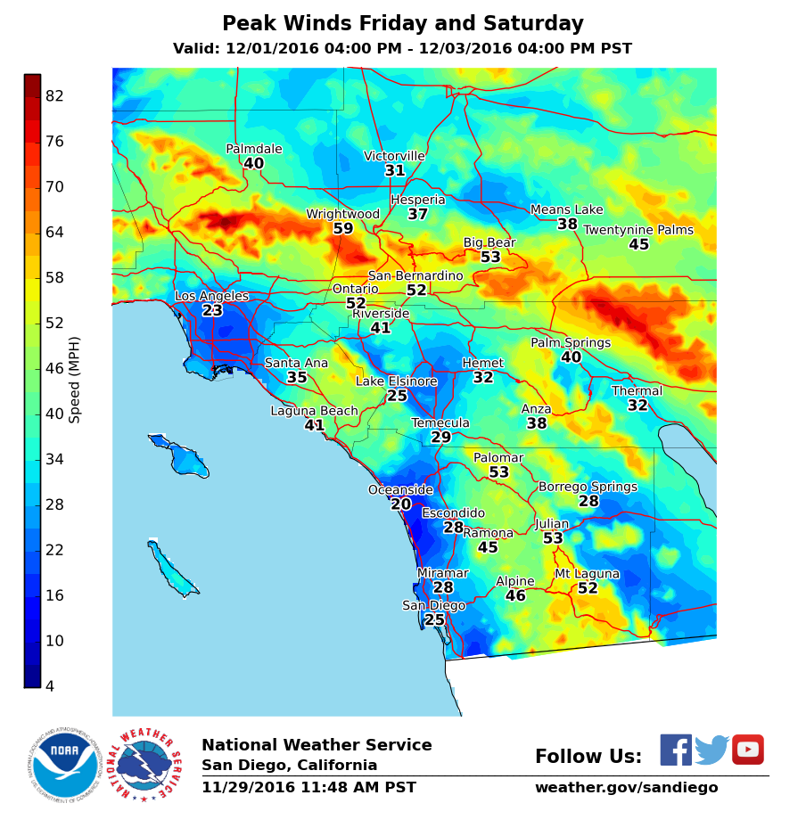 East County Wildfire and Emergency Alerts November 30, 2016 (San Diego’s East County) – A potentially strong Santa Ana weather pattern will develop Thursday evening, bringing strong Santa Ana