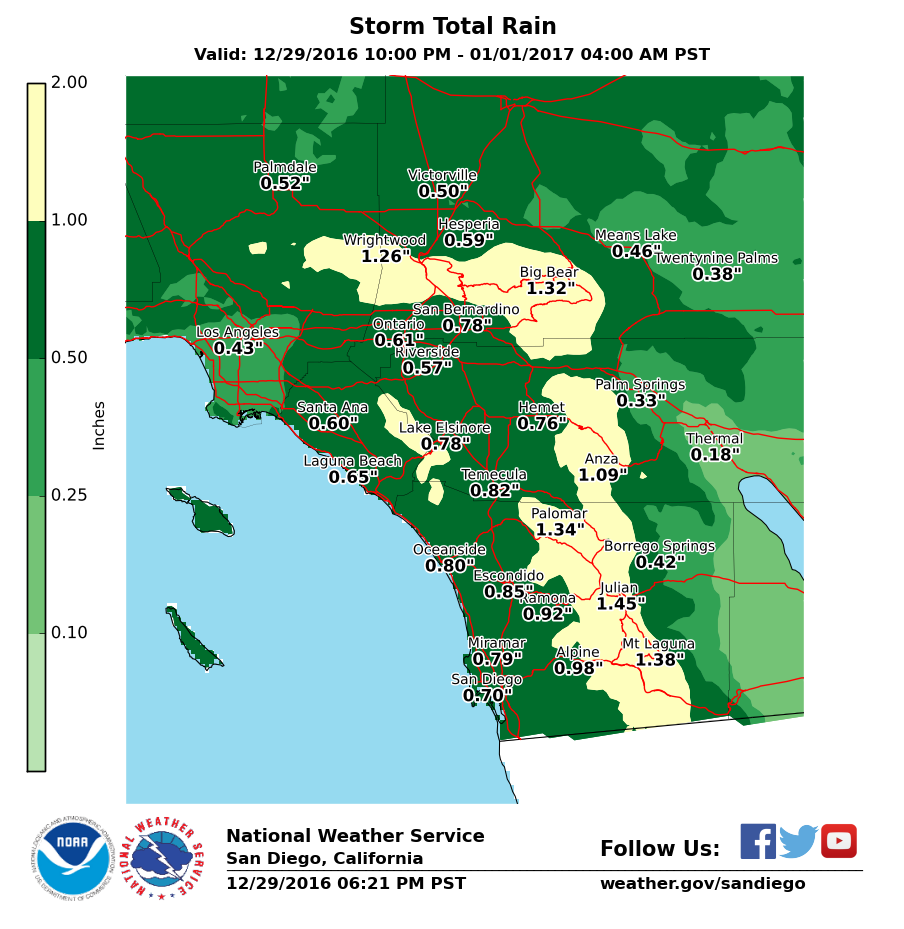 East County News Service December 30, 2016 (San Diego’s East County) – Two storms are set to douse our region this weekend. The first is forecast to arrive Friday