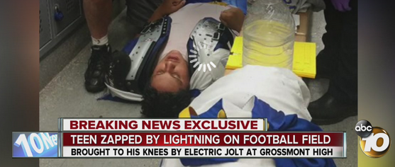 By Miriam Raftery Photo courtesy ECM news partner 10 News October 25, 2016 (El Cajon)—A 14-year-old football player at Grossmont High School was injured by lightning that struck nearby while