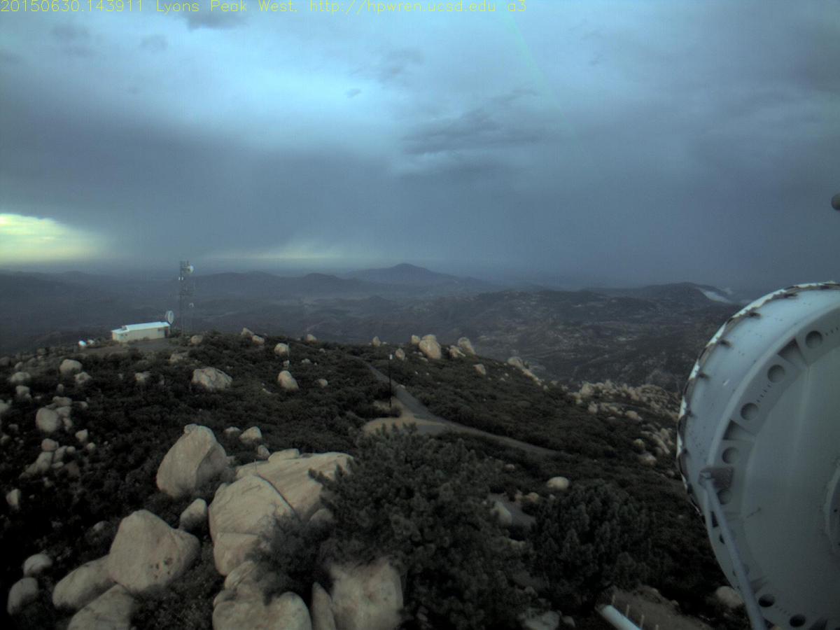 East County News Service Photo: View from Lyons Peak, Jamul, courtesy UCSD HP Wren webcam Update 3:30 p.m. – Mudslide across roadway: Highland Valley and Archie Moore roads,