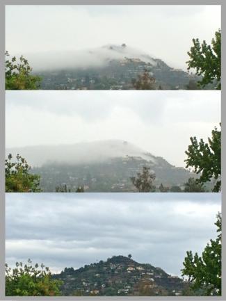 July 19, 2015 (La Mesa) — Kristin Kjaero shot this sequence of photos during the mid day storms on Saturday, July 18, 2015. The photos show Mt. Helix disappearing in