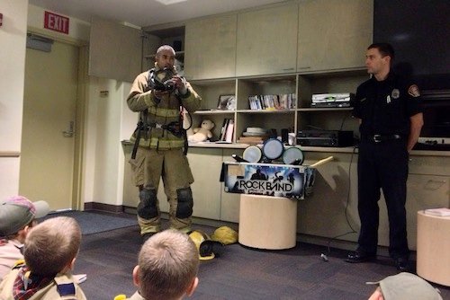 The Readyman Activity Badge is a core requirement for the Arrow of Light, the last step before Boy Scouts. The training focuses on the courage steps, “Be calm; Be clear; Be careful” and how that applies in responding to an emergency. The training included first aid, safe swimming procedures and a fire escape plan for your family.