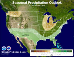 A drought watch story with data compiled by Alex Tardy at the National Weather Service notes that historically, recent El Niño winters have resulted in precipitation at or below normal. “California would need about 150 percent of average for the rainy season(October to April) in order to significantly reduce the drought” and raise water supplies that are 35 to 45 percent below capacity to near-normal levels, Tardy concludes.