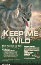 Allowing coyotes access to human food and garbage is reckless and deadly. Coyotes primarily hunt rodents and rabbits for food, but will take advantage of whatever is available, including garbage, pet food, and domestic animals.