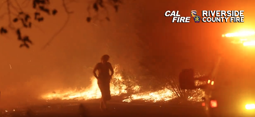 Printer-friendly version By Miriam Raftery View dramatic rescue by a Cal Fire/Riverside County Fire battalion chief of a woman walking through flames in Airport Fire September 13, 2024 (San Diego)