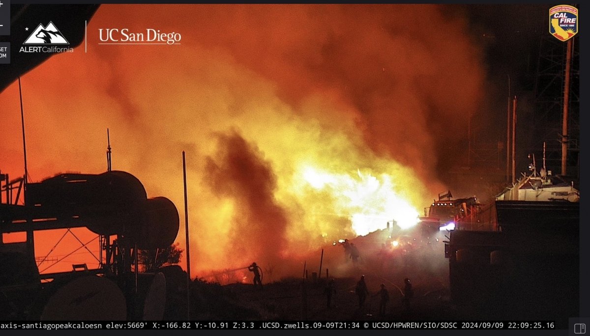 Printer-friendly version By Miriam Raftery Photo,left via UCSD Wren Camera: Hellscape atop Santiago Peak in Orange County, where the Airport Fire destroyed communications towers. September 10, 2024 (San Diego)