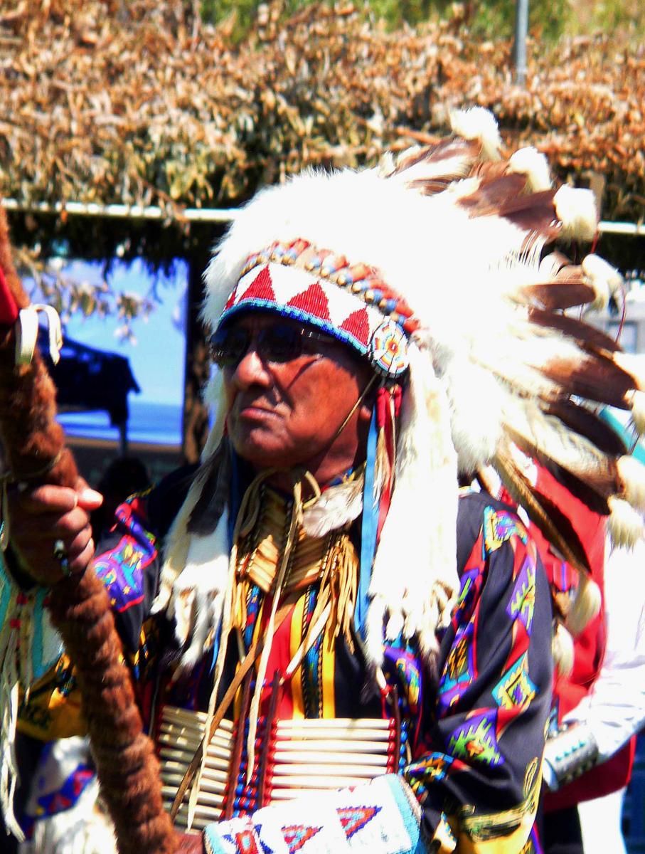 Highlights of each pow-wow include a grand entry, or honorary processional, led by a tribal leader carrying an eagle staff (photo) followed by costumed dancers such as gourd dancers, men’s traditional, men’s grass dancers, men’s fancy, women’s traditional, women’s Jingle, and women’s fancy dancers. Children are also included in the competitions and festivities.
