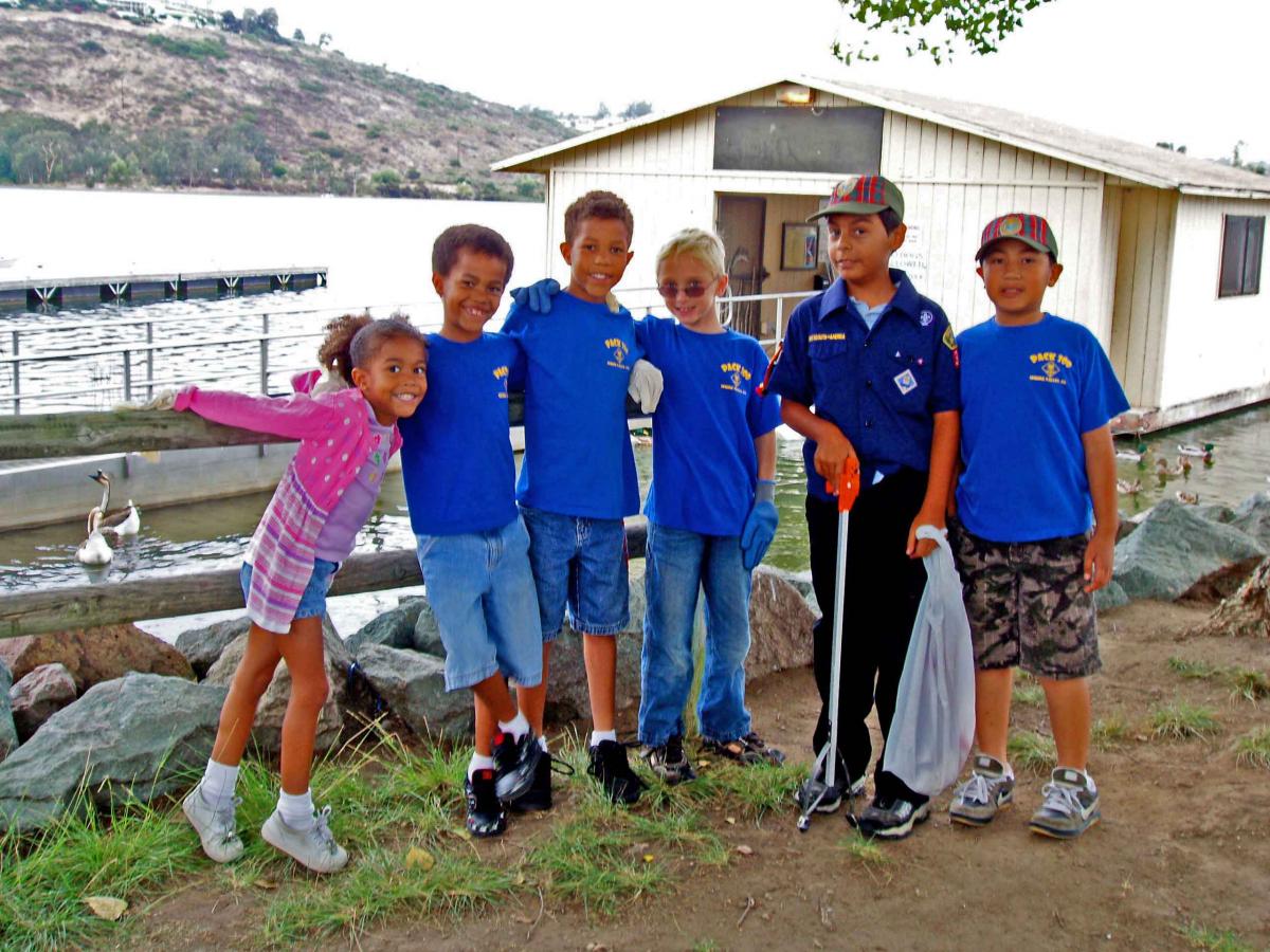 Children and adults pitched in to help clean up East County lakes and rivers, including these youngsters helping out at Lake Murray on Coastal Cleanup Day.
